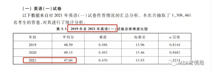 據《2022高教版 全國碩士研究生招生考試 英語(一)、英語(二)考試分析(非英語專業)》,19考研-21考研的英語平均分數已公布。(數據來源于教育部考試中心)
