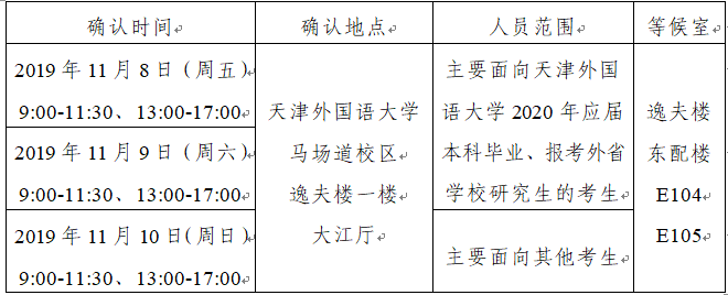 以上就是“天津外國語大學2020MBA現場確認時間:11月8號-10號另附現場確認所需材料”的全部內容,請考生務必參加現場審核,祝你考研成功!