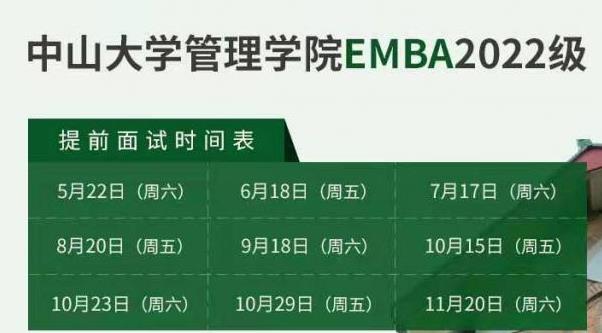 2022EMBA提前面試:中山大學管理學院2022年EMBA提前面試申請通道已開啟”,更多相關信息,請持續關注本網站!
