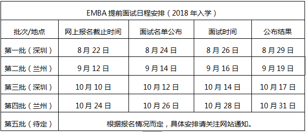 蘭州大學高級管理人員工商管理碩士(簡稱“EMBA”)項目始于2009年, 目前為甘肅、青海、寧夏地區唯一獲批開辦EMBA學位教育的院校。項目整合國內一流的授課師資,以創新、先進且符合時代發展的教學理念,吸引了大批優質生源,取得了良好的辦學效果,產生了積極的社會影響。為提高招生競爭力,吸引優秀生源報考蘭州大學EMBA項目,我院計劃在蘭州、深圳兩地開展2018年EMBA招生提前面試工作。獲得提前面試合格資格的考生,可享受蘭州大學研究生招生自劃線政策,降低考試錄取風險。