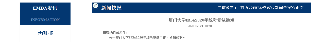 關于廈門大學EMBA2020年統(tǒng)考復試工作,通知如下。