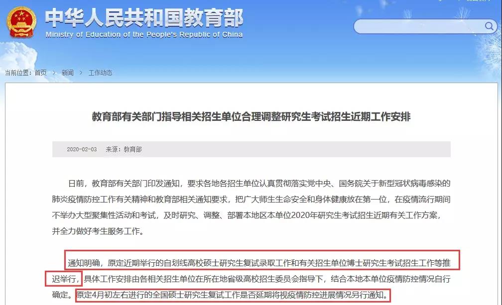 導讀:隨著疫情的發展,各大院校都做出了晚開學的通知,不允許提前返校。考研黨們,擔心的復試是否會如期進行,2月3日,教育部給出了官方通知,不要浪了,教育部間接提醒你該準備復試了。