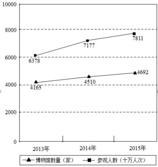 2013-2015年我國博物館數(shù)量和參觀人數(shù)