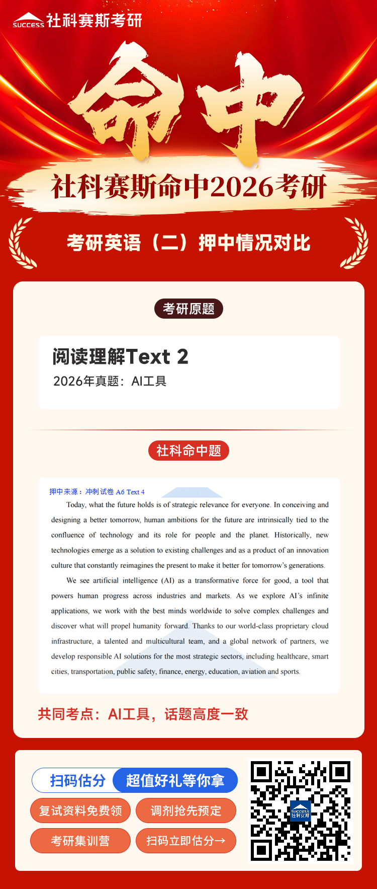 喜報:社科賽斯考研再次命中2026考研(英語二)大小作文!