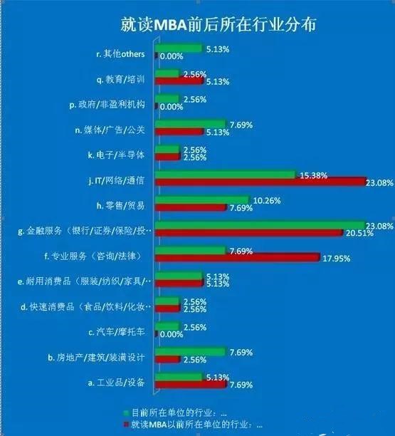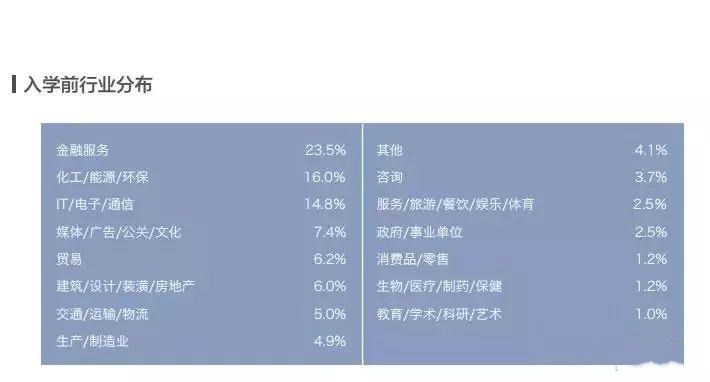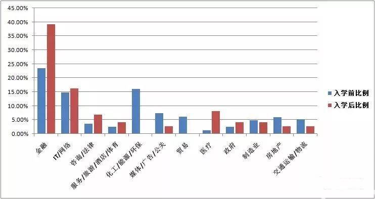 可惜,找不到入學(xué)前的行業(yè)分布,所以無法給大家做出具體的對比分析。所以這里我們只好先略過。如果有同學(xué)知道復(fù)旦IMBA的入學(xué)前行業(yè)分布數(shù)據(jù),也請告知,我好把這一塊給補(bǔ)上!