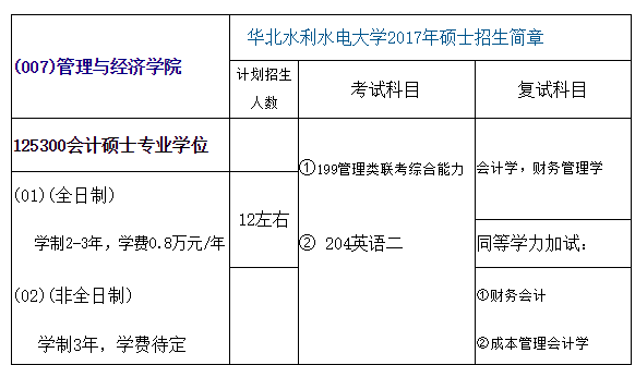這是華北水利水電大學2018年MPAcc招生簡章,不知道去年是什么情況。