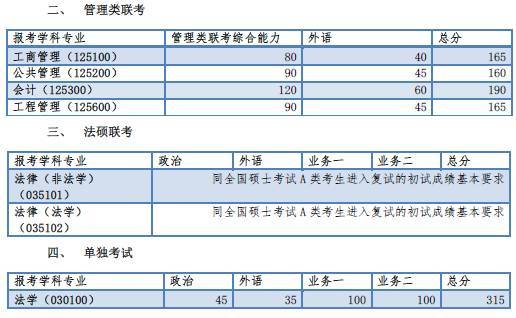 2017年碩士研究生入學考試復試分數基本要求如下:
