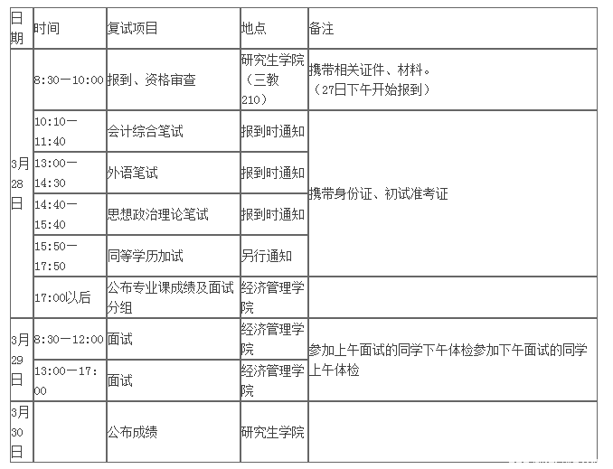 復(fù)試內(nèi)容包括資格審查、體檢、會計綜合筆試(內(nèi)容涵蓋: 財務(wù)會計;管理會計;財務(wù)管理;成本會計,其中財務(wù)會計是指初級和中級部分,占比50%以上)、英語筆試(含聽力)、思想政治理論筆試(開卷)、綜合面試(含英語口語測試)。同等學(xué)力考生須加試基礎(chǔ)會計和管理學(xué)。