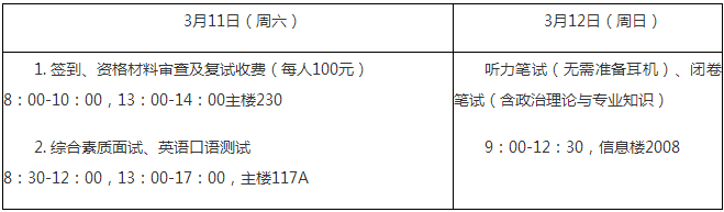 2. 復試內容與時間:復試將在2017年3月11--12日舉行,具體安排如下。