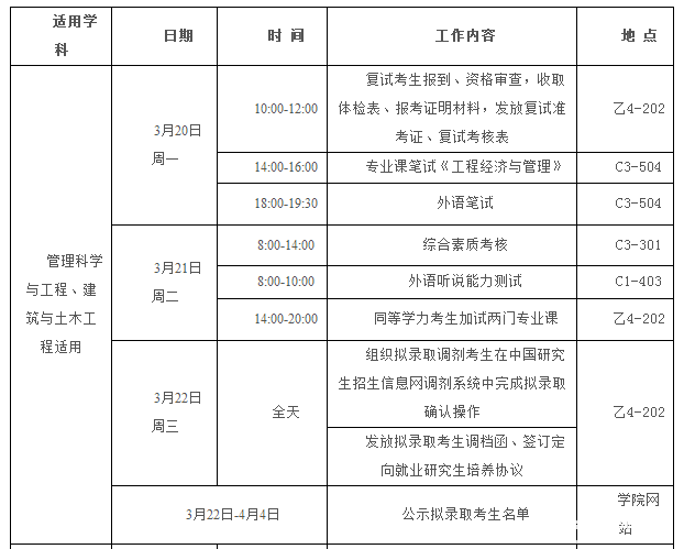 1.管理科學(xué)與工程(全日制)、建筑與土木工程(全日制)學(xué)科領(lǐng)域優(yōu)先接收 “985”院校、“211”院校畢業(yè)生調(diào)劑,初試成績須符合2017年全國碩士研究生招生考試考生進入復(fù)試的初試成績基本要求(A類),不接收同等學(xué)力調(diào)劑考生;