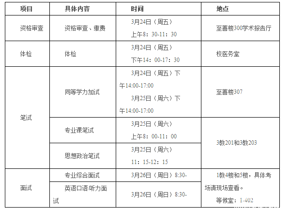 ⑥同等學(xué)力考生除須參加上述復(fù)試內(nèi)容外,還須參加2門該專業(yè)本科階段主干課程的加試(筆試,成績不計入復(fù)試總成績)。加試科目每科試卷滿分為100分,考試時間為3小時。