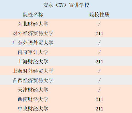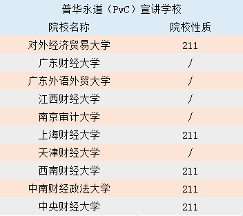 根據上面的整理,很明顯可以看出四大在招人的時候,除了傳統意義上的強校以外,對于很多財經類院校也是非常青睞的,其中有幾所學校,四大都恩寵有加:
