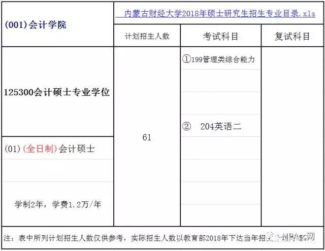 內蒙古財經大學2018年會計碩士(MPAcc)招生簡章