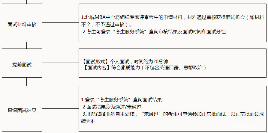 未通過考生:第一志愿報考北航MBA,聯(lián)考成績達(dá)到北航線,可申請參加正常批面試。