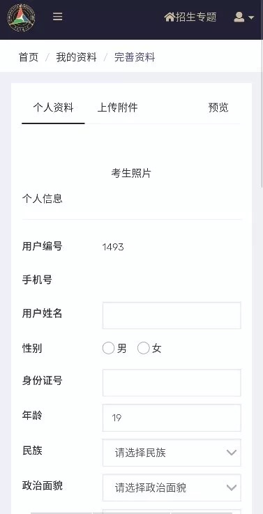 第三步:完善資料:登錄系統(tǒng)后,點(diǎn)擊“修改”按鈕完善資料,并上傳附件,保存信息。