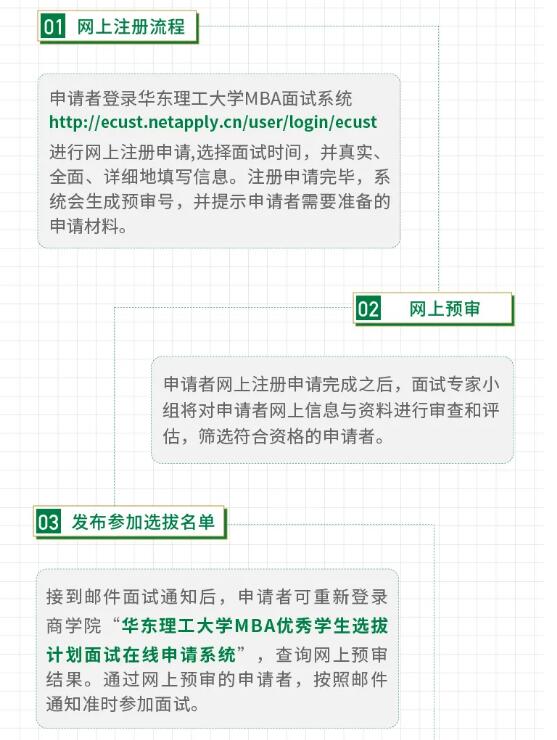 以上就是“2021年MBA提前面試 |2021年華東理工大學MBA第三批招生通道開啟”的全部內容!更多考研信息持續更新,多多關注!祝考研順利,馬到成功!