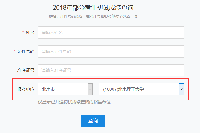 以下是北京理工大學,2018年全國碩士研究生考試成績查詢入口(https://yz.chsi.com.cn/apply/cjcx/)