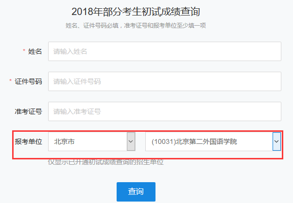 以下是北京第二外國語學院,2018年全國碩士研究生考試成績查詢入口(https://yz.chsi.com.cn/apply/cjcx/)
