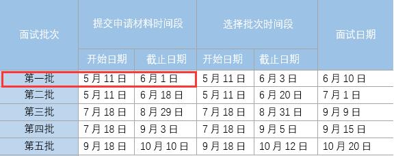 3、在非材料提交時間段內,考生隨時可登錄系統填寫并保存材料,以便在材料提交時間段內及時提交材料。在每個批次的材料提交時間段內,審核老師都將按照考生的提交時間順序審核材料。考生只要材料審核通過,就能選擇對應的批次,而每個批次的面試名額有限,根據歷年情況,每個批次都可能出現下列情況:在提交材料或者選擇批次的截止日期前,面試名額已滿。因此,提醒考生提前計劃,越早提交材料,選到目標批次的可能性越大。