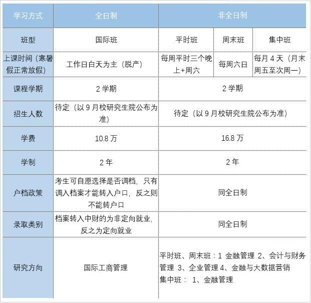 4、關于學習方式:全日制和非全日制的選擇:考生在提前批申請材料中,必須選擇學習方式,且必須與通過中國研究生招生信息網(簡稱研招網,教育部指定網站)報名時(一般在10月)選擇的學習方式一致。即,在提前批選擇了全日制,在研招網報名時也必須選擇全日制,非全日制同理。如果不一致,已經取得的A類預錄取資格降為B類預錄取資格;已經取得的B類預錄取資格降為無提前批面試成績,只能在聯考成績達到中財MBA復試分數線后,參加正常批復試。