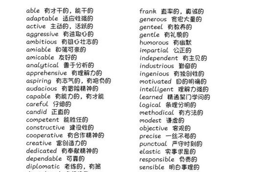 在這里,小編也搜集了些描述個人品質常用詞匯的中英文對照,可以參考一下~