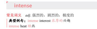 導(dǎo)讀:本期單詞intense(強(qiáng)烈的,劇烈的,極度的),配以音頻,全方位學(xué)習(xí)