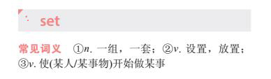 導讀:本期單詞set(設置,放置;一組;使),配以音頻,全方位學習