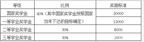 表二:全日制碩士研究生獎學金獎勵標準(定向除外)